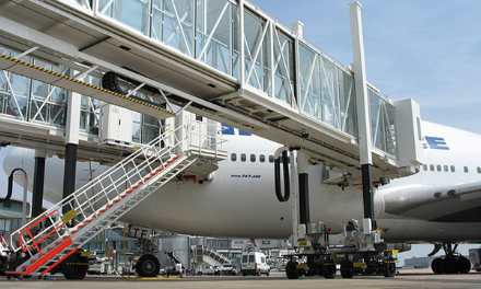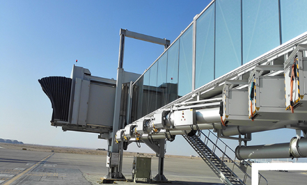 A380登機(jī)橋二層U1超高艙門而設(shè)計的登機(jī)橋,采用了行業(yè)內(nèi)首創(chuàng)的四輪驅(qū)動行走機(jī)構(gòu)及其控制系統(tǒng)。